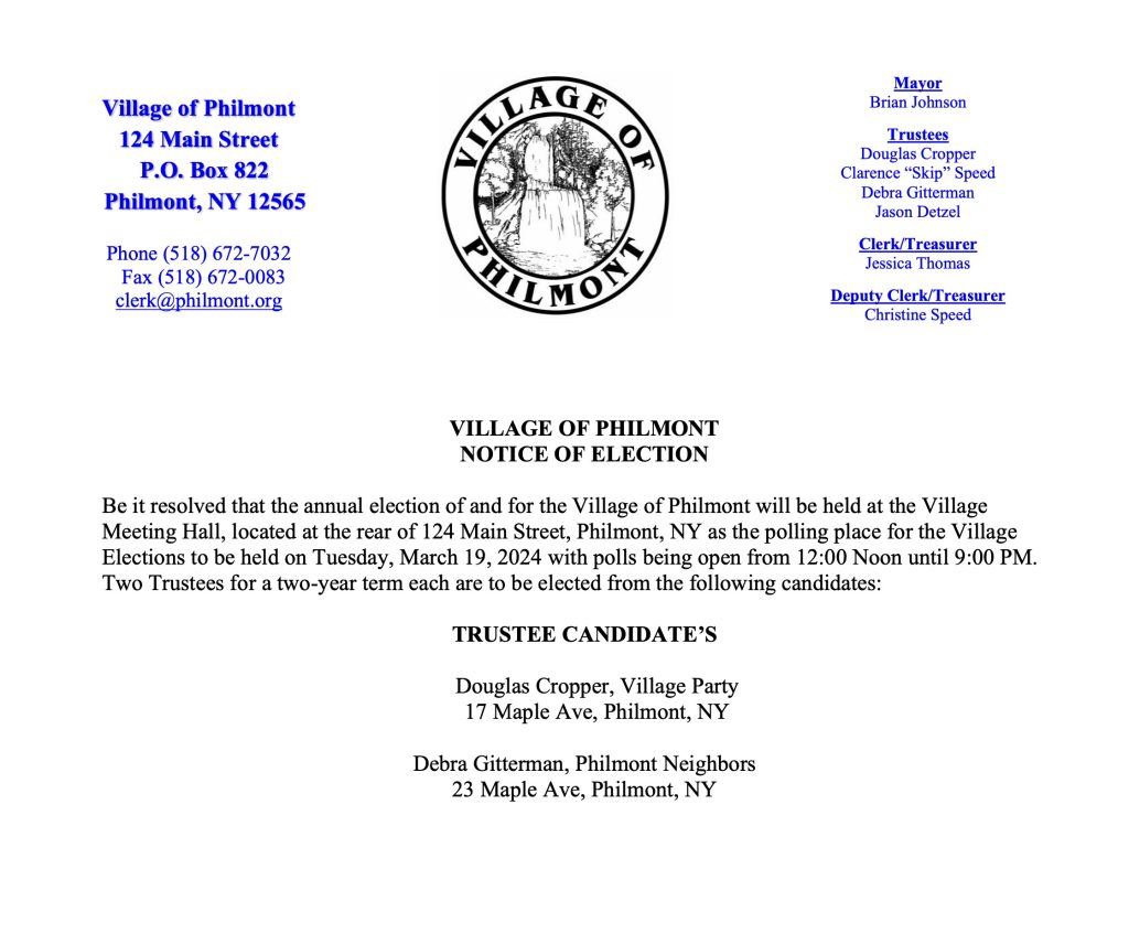 Notice of Election | Village of Philmont